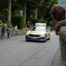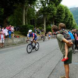 We hadn’t managed to get the limited availability tickets for the cable car up to Superbagnères for the finish line, but we managed to find somewhere to park in an absolutely packed town, and then to bag about a metre of kerb along the route as it led up towards the final 16km climb up to Superbagnères.