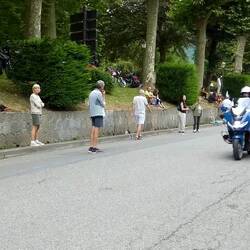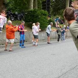 After all of the riders had swept by, followed by all of the support vehicles and police escort, we walked the short distance along the road towards the centre of town where we found a sort of fan village (for invited guests) but most importantly with a large screen showing the live coverage of the final moments of the stage as Arensman won the stage, followed a minute later by Pogocar just beating the third placed Jonas Vingegaard in the last few metres.