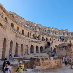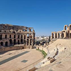 Ein paar Eindrücke vom Amphitheater in El Djem. Es ist nach dem Kolosseum in Rom und der Arena von Verona das drittgrößte Amphitheater aus römischerBaca lagi