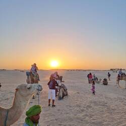 Im Rahmen der Südtunesien Tour haben wir den Sonnenuntergang auf dem Rücken von Kamelen erlebt.