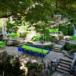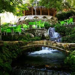 Unter schattigen Bäumen, klares Quellwasser zu den Füßen genießen wir einen Kaffee und kühlen uns etwas ab.