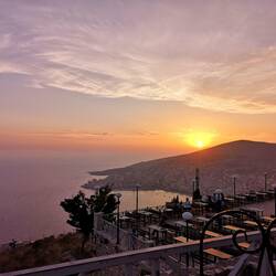Im lauen Abendwind bei albanischer Folklore genießen wir unser letztes Abendessen in Albanien.