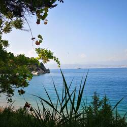 Unser Haus am Strand ist paradiesisch. Ein schöner Garten, der Blick auf die Avlaki Bucht umwerfend schön.