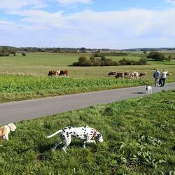 Wir spazieren auf romantischen Wegen rund um Alflen. Ruby hält wacker durch. Die Ausblicke sind herrlich.
