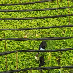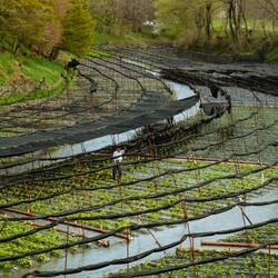 Vast fields with little green plants dotting the landscape it was quite the operation! Reaching the best view point we had a nice view of the farm with the alps in the background, sitting down and enjoying the view we watched a few of the farmers out in the field picking the wasabi and working on the farm. A lot of the wasabi is covered in a black netting that is to protect them from the sun as wasabi is apparently very sensitive to direct sunlight once it’s developed past a certain stage!