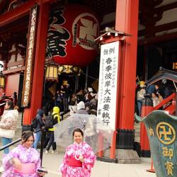 Since we were in the area with time to spare we visited the Senso-ji temple which is probably the most famous temple in Tokyo as it is absolutely huge! With a great hall stretching across the main square with a five story pagoda reaching towards the clouds with massive lanterns hanging at every entrance it is incredibly dramatic and spectacular even in the pouring rain! There were lots of people dressed in kimonos kneeling in the main shrine paying their respects and people arriving in rickshaws really made it an extremely bustling site!