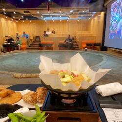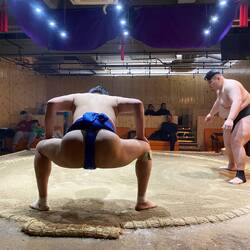 The last activity of today was going to watch the Sumo wrestlers train. Now when I went before it was really strict and you had to be very respectful. You couldn’t eat or drink or talk loudly. This experience couldn’t have been further from what I was expecting. We arrived and were told our seats had been upgraded to front row which was AMAZING and we were brought chicken hotpot to eat whilst we watched! The experience started off with a traditional geisha girl dance which was very beautiful using a fan. Then our host introduced the two sumo wrestlers who we would be watching and took us through all the rules of sumo wrestling. We then watched three matches and it seemed very unfair as in sumo they don’t have weight divisions so this rather scrawny sumo wrestler compared to the other one unsurprisingly lost! It really looks like a brutal sport. They start by crouching down on their tippy toes I might add! And then launch themselves at each other trying to grab onto the cloth that wraps around them and wrestle the other sumo out of the circle. We then got a chance to ask the sumos lots of questions and got to take a photo with them. It was a very surreal experience and Jacob and I came out feeling like we were just in a fever dream! But all jokes aside it is a very impressive sport that they take unbelievably seriously, and when you are throwing yourself at a 200kg man - I can’t blame them!Les mer