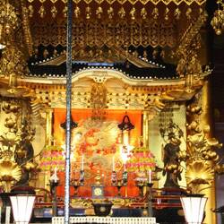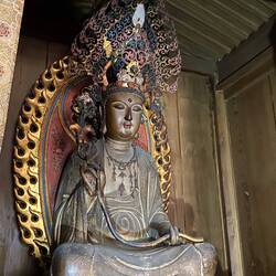 We started off the day by going to a rather bizarre shrine that had over 1,000 statues of foxes- that’s right foxes. In Japanese culture foxes are messengers of Inari who in Japanese mythology is the god of rice cultivation and prosperity, so this shrine was dedicated to Inari with thousands of fox statues! What’s lovely about the Japanese shrines is that there is always incense burning so it really adds to the atmosphere as you try to immerse yourself in Japanese mythology. We were lucky that we could kneel in the shrine but obviously with no shoes on and we weren’t allowed to take pictures within the actual shrine itself. As we knelt down monks came out and began chanting and going through a ritual with a drum I later looked this up and found out that It is often used to symbolize the beating of the Buddha’s heart and is believed to create a deep resonance that helps practitioners connect with the Buddha’s wisdom and compassion. It is also seen as a powerful tool for meditation and mindfulness. There were only 4 of us in the shrine when this happened and it was very spiritual! I’m not a Buddhist but kneeling there listening to the mantras and the drum it felt really spiritual and connecting to some higher power somewhere. Also, all the Buddhist shrine are beautifully decorated with gold and painted ceilings, it really is a breathtaking sight!