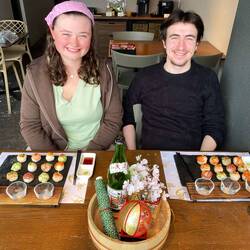 Now today was incredibly varied and probably my favourite day so far! We started the day in Asakusa learning how to make sushi! We made kawaii temari sushi which translates to “cute sushi balls”. This type of sushi was traditionally eaten by Geisha girls and it lives up to its name- it is very cute! We got one on one teaching as for some reason the other people in the class were making different types of sushi but it worked out well as it meant it felt like a private lesson. It was very easy to make and not challenging in the slightest. You make a rice ball and then using pressure you add whatever main ingredient for example tuna or salmon and then you add your toppings of caviar or micro herbs. Unsurprisingly, Jacobs looked very professional and beautiful whilst mine looked cute but since they are meant to be “cute sushi balls” I’ll take it! Now I had a lot of fun making very pretty cute sushi balls but I didn’t really stop to think about making ones I could actually eat. For those who don’t know I don’t eat fish really at all and as I stared at these raw tuna, salmon, scallop and shrimp sushi balls they were no longer as cute as I originally thought. I powered through and ate almost all of mine but couldn’t quite stomach finishing the last few so Jacob eagerly vacuumed them up. And yes, I thought they were absolutely insufferable so my plan to get used to fish so far is incredibly unsuccessful.