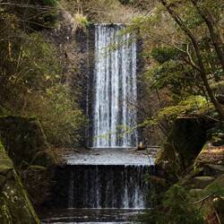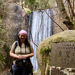 After strolling around the huge grounds and the many temple buildings which was equipped with the most HUGE flag of Japan- (slightly random?!) I led us around the back of the temple and into the woods behind. After walking for a while we came across a small very simplistic shrine tucked away in amongst the trees. Beautifully peaceful apart from the flowing river it was a very nice spot to relax and enjoy! We then found a man made waterfall and went off the path to try get closer to it which we did manage to do but we weren’t able to go right up to it like I wanted but it was a very picturesque background!