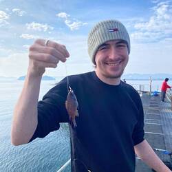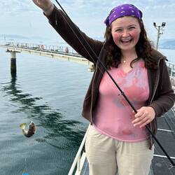 After about an hour of not catching anything I was getting a little fidgety- those who know me well know I’m not the most patient person on earth! But I was saved by the very sweet old man. I feel a bit bad just calling him “old man” but i don’t know his name and even if I did I’m sure I wouldn’t be able to spell or pronounce it! He gestured for me to give him the rod so I did and he led me further down the pier and then showed me how he fishes. He definitely looked like he knew what he was doing more than us but I don’t think that’s very hard! After studying his techniques he passed me the rod back and about 5 minutes later I caught the first fish! I was absolutely chuffed with this. It was the smallest fish I’ve ever seen and I’m very glad that this wasn’t our plan for dinner as we definitely would have gone hungry! It didn’t matter to me though I was so excited until I then realised that I had to unhook it. Turning to Jacob he had the sudden realisation that I wasn’t going to unhook the fish and that it was now his job. You can call me girly and screamish if you wish and that’s probably fair but I really didn’t want to unhook the fish. In total I caught 3 fish and Jacob caught 1 but it’s not a competition and it’s not like I’m keeping track or anything ;).