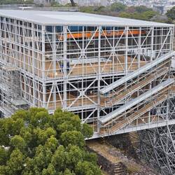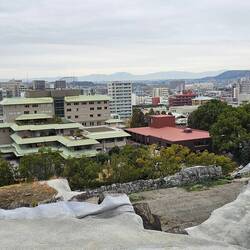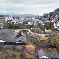 Kumamoto Castle, one of the three most famous castles (I visited the other two already in Nagoya and Osaka) was on today's Wishlist. Luckily it was very close to my Hotel, so I walked there and bought a combo ticket for the castle and two museums. There was a series of devastating earthquakes in the Kumamoto Prefecture in May 2016, leaving many of the townships damaged, Kumamoto Castle, a conglomerate of many towerkeeps along the wall was also badly damaged, walls and turrets collapsed, the keeps barely survived, but need to be rebuilt to be safe. There was a high path built just for visitors to oversee, but not disturb the reconstruction area and create a path to the main keep which was finally reopened in 2021. The interactive Exhibition before and inside the castle was very interesting and well done, later I also visited the city museum which had two levels of fantastic exhibitions. History, Archaeology and on the second floor, an amazing natural history section full with really good taxidermy animals from the prefectures, insects, fish, amphibians, a huge collection. It felt like I had the Museum all to myself, If more of the text would have been translated, I could have spent the rest of the day there. They even had a Steam Locomotive in the backyard...