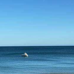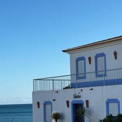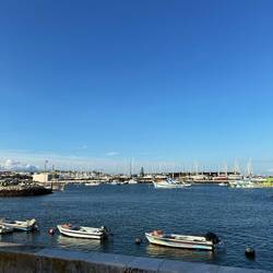 Nach unserem Strandbesuch fahren wir nach Burgau. Hier schlendern wir durch die Gassen und finden ein nettes Cafe mit Meerblick