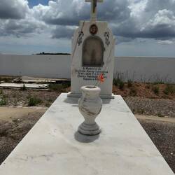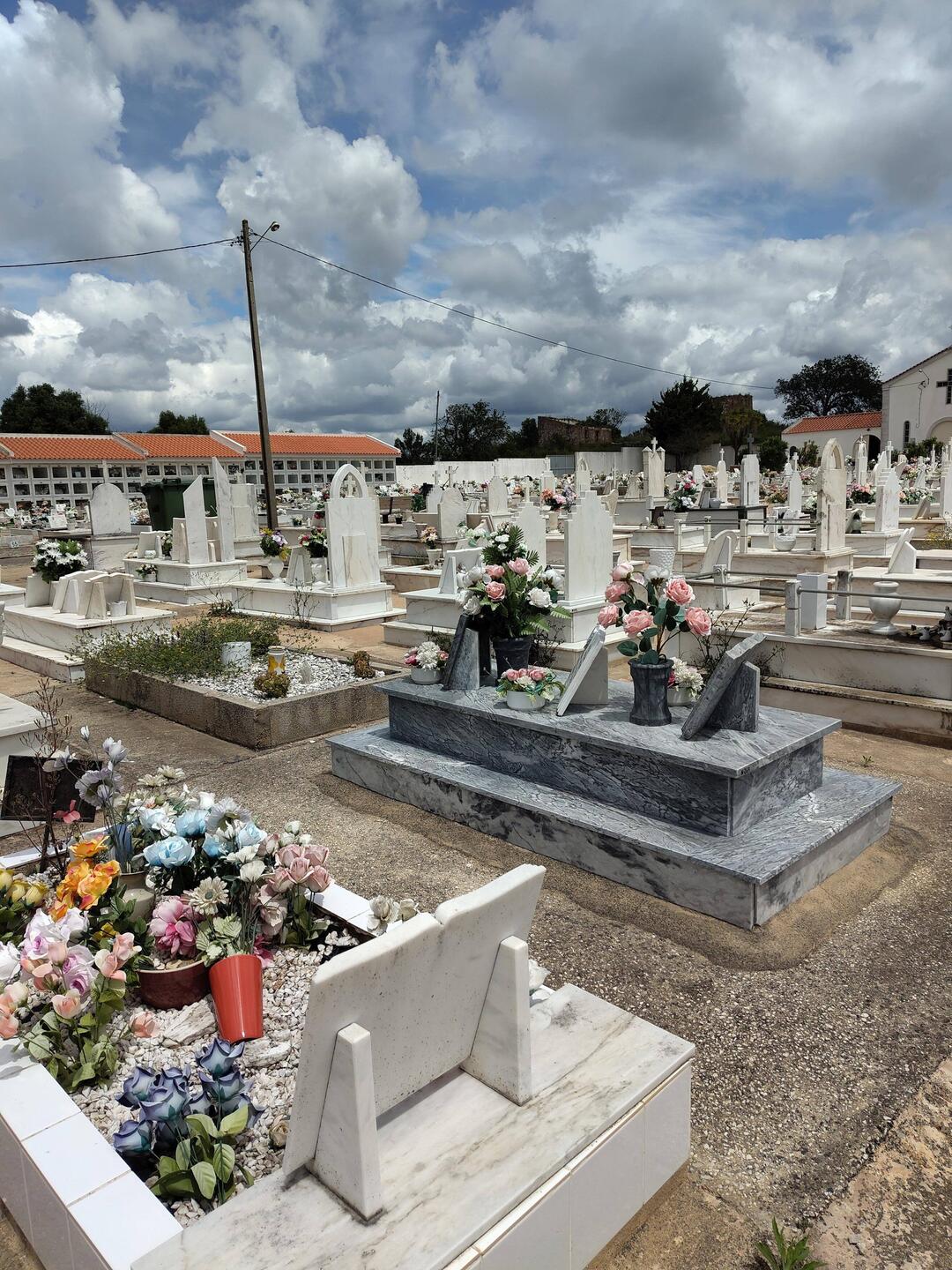 ... Befindet sich in St. Bartholomäus de Messines der Friedhof. Dort ist Maikes Vater begraben. Auf dem Plateau hat man eine tolle Aussicht. Wir suchen das Grab, schlendern über den Friedhof.