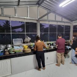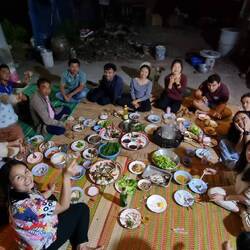 Nachdem ich mit Bass den "Laufbandtoaster" notdürftig repariert habe, und ich drei meiner alten Businessanzüge an Pi Sin vermacht habe, ein Gruppenfoto gemacht haben und einen Blick in die KücheOkumaya devam et