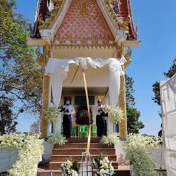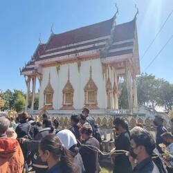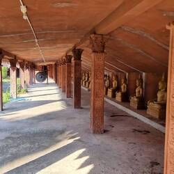 Ein paar Kilometer weiter im Thailändischen Outback - ist eim bisschen übertrieben,hat immerhin Strom - besuchen wir eine Tempelanlage. Der Tempel heisst "liegender Elefant ".