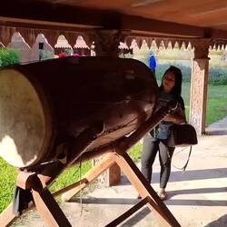 Erstes Ziel ist der Riesengong und Tempel "Ban Dam" im Dorf Khong Chiam.