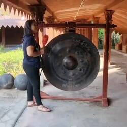 Der Gong ist tatsächlich aus Blech gefertigt, ob er mit einem Riesenschlagstock einen Ton abgeben würde weiss ich nicht. ErOkumaya devam et
