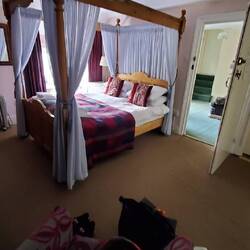 We initially considered stopping in Alston again tonight, but the need to hit the 4pm deadline for the ferry on the final day necessitated pushing 7 miles further east and adding another 300 metres of climbing onto what was already a long and hilly day. Checking into the Allenheads Inn to a lovely welcome, a room with a four poster bed and the offer of a rib eye steak and chips for dinner were compensation enough. We had a great day's cycle, fairly flat in the morning with lots of steep climbs and fast descents in the afternoon. Not as hot as yesterday but a bit humid in the afternoon.
