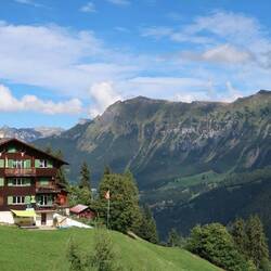 Murren is a cosy mountain village, which at 1650 meters is the highest continually inhabited settlement in the region. Nestling between the towering peaks of the Schilthorn and the Jungfrau, just across the Lauterbrunnen valley, this car-free village is only accessible by cable car or mountain train (or on foot). High above the village, at the top of the Schilthorn is Piz Gloria, the revolving restaurant featured in the 1969 James Bond movie "On Her Majesty's Secret Service ".