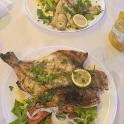 Und zum Essen gabs heute wieder frischen Fisch. Philipp hatte eine "Dourade" (Goldbrasse) und ich probierte "Robalo" (Wolfsbarsch) und eins kann ich nur sagen... die wissen wie man einen Fisch richtig gut zubereitet 😁😋Read more