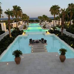 Heute hatten wir die Möglichkeit uns das Hotel mal ein bisschen genauer anzuschauen. Die bezaubernde Elena vom Gäste Management hat uns eine Stunde lang durch die Anlage geführt, verschiedene Zimmerkategorien gezeigt und ganz viel zum Hotel erzählt. Im Dama Dama gibt es insgesamt 307 Zimmer. Die Auswahl reicht von eleganten Doppelzimmern über Bungalows bis hin zu großzügigen Familienzimmern – viele davon mit Meerblick und als Lofts ( über zwei Etagen). Die Einrichtung der Zimmer bzw. das Design ist weitestgehend identisch, die Preisgestaltung orientiert sich hier daher eher an der Lage, der Größe und dem Ausblick. So gehören, zum Beispiel, die Superior Doppelzimmer zur günstigsten Kategorie, gefolgt von den Superior Zimmern mit Garten- und seitlichem Meerblick. Im Haupthaus befinden sich außerdem Zimmer mit Meerblick und im Nebenhaus Zimmer mit Panorama Meerblick, hier muss man dann schon etwas tiefer in die Tasche greifen. Die Grecotel LuxMe sind ausschließlich All Inclusive Häuser und für das leibliche Wohl wird hier mehr als gesorgt. Neben einer riesigen Auswahl an Getränken ( auch hochwertige internationale Spirituosen) können die Gäste sich hier in zwei Buffet- Restaurants bedienen oder sich einen Tisch in einem der 4 a la Carte Restaurants reservieren ( asiatisch, italienisch, griechisch oder Meeresfrüchte). Die Lounge- Bar und die Pool- Bar verwöhnen einen von 10 bis 24 Uhr und zwischendurch kann man sich im Meer oder einen der drei Pools erfrischen. Der Strand ist leider ziemlich kieselig/ steinig, hier empfehle ich unbedingt Badeschuhe. Der Hauptpool ist riesig und immer gut besucht, daneben gibt es einen Kinderpool mit Wasserrutsche und einen Indoor- Pool im Spa Bereich ( in der Nebensaison beheizt, Zutritt ab 16 Jahren). Für die Sportbegeisterten gibt es ein gut ausgestattetes Gym, eine riesengroße Yoga- Area und jede Menge Kursangebote. Wellness Freunde kommen im Spa oder in der Sauna ( vorher reservieren, maximal 4 Personen) auf ihre Kosten. Besonders erwähnt, sei noch der liebevoll gestaltete Kids- Club mit der außergewöhnlich herzlichen Betreuerin und den umfangreichen Öffnungszeiten (siehe Foto). Nach der Besichtigung nahm sich der Manager Andreas noch Zeit sich mit uns zu unterhalten. Er berichtet, dass das Hotel 2018 überwiegend komplett renoviert wurde und man besonders stolz darauf ist, Kinder- und Tierfreundlich zu sein. Es wird tatsächlich nicht nur Familien mit Kindern eine Menge geboten ( Kinderstühle- und Betten, spezielle Nahrung, Unterhaltungsprogramm etc.), man darf tatsächlich auch sein Haustier mitbringen ( Voranmeldung, Gebühren). Alles in allem war es ein sehr interessanter Rundgang und und abends haben wir dann direkt mal das italienische Restaurant besucht. Das Essen war wirklich ausgezeichnet und der Service exzellent. Und so ging ein weiterer Urlaubstag zu Ende.Læs mere