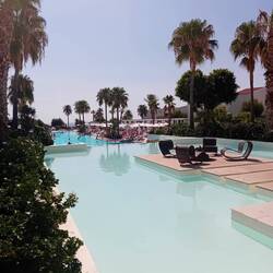 Am zweiten Tag auf Rhodos sind wir endlich richtig an- und auch schon ein bisschen runtergekommen. Wir sind wieder ganz entspannt in den Tag gestartet. Ich mit Kaffe auf dem Balkon, Sonne auf der Haut, Wind im Haar und dem salzigen Duft des Meeres in der Nase. Nach diesem poetischen Start wartete wieder ein episches Frühstück auf uns und nachdem wir dieses genossen hatten, ging es auf zum Strand. Bei strahlend blauem Himmel lauschten wir dem Rauschen des Meeres und genossen auf unserer Liege das süße Nichtstun. Dieses unterbrachen wir nur für ein paar Runden baden und ein paar Ausflüge zur Bar. Die Crêpes und die Cocktails wurden schon mal für sehr gut befunden, das Mittagsbuffet ebenso. Es ist kaum zu glauben wie schnell ein Tag vergeht, obwohl man null produktiv ist 😂. Vor dem Abendessen haben wir noch ein bisschen die Gegend rund ums Hotel erkundet. Es gibt hier ein paar Kneipen, unzählige Souvenirläden und ein paar andere kleine Läden und wir sind eindeutig mitten in einer Touristen- Hochburg. Dafür dass Hauptsaison ist, geht aber dennoch alles sehr beschaulich zu. Nach einem opulenten Abendmahl haben wir uns ein bisschen Kultur gegönnt. Im Garten Theater trat eine tansanische Akrobatengruppe, das war ein seichter aber netter Zeitvertreib. Nach einem Scheidebecher an der Beach Bar zogen wir uns auf unseren Balkon zurück und ließen den Abend dort ausklingen. Unser Zimmer ist ein Superior Doppelzimmer und liegt somit eher in der unteren Preisklasse, trotzdem ist es sehr geräumig, verfügt über einen großen Balkon (mit seitlichem Meerblick) und ist überwiegend gut in Schuss. Auch das Bad ist ausreichend groß und es gibt eine Regendusche mit ausreichendem Wasserdruck. Es ist wohlriechendes Duschbad, Schampoo und Conditioner da (und Duschhauben 🤷🏼♀️), zusätzliche Annehmlichkeiten ( wie zum Beispiel Q- Tips) leider nicht. Das Housekeeping ist gründlich und gewissenhaft, hat aber mal mehr, mal weniger Lust zum dekorieren. Neben der Minibar, die täglich aufgefüllt wird, gibt es auch einen Safe und einen Fön. Was mir fehlt ist eine Sitzauflage für die Stühle auf dem Balkon, hier sind leider nette ,,Netzmuster“ auf dem Popo an der Tagesordnung. Die Gäste im Hotel sind sehr international und das Personal stets sehr freundlich und bemüht. Insbesondere die Damen und Herren an der Beach Bar racken wie bekloppt, haben aber trotzdem ein Lächeln für einen übrig.Læs mere