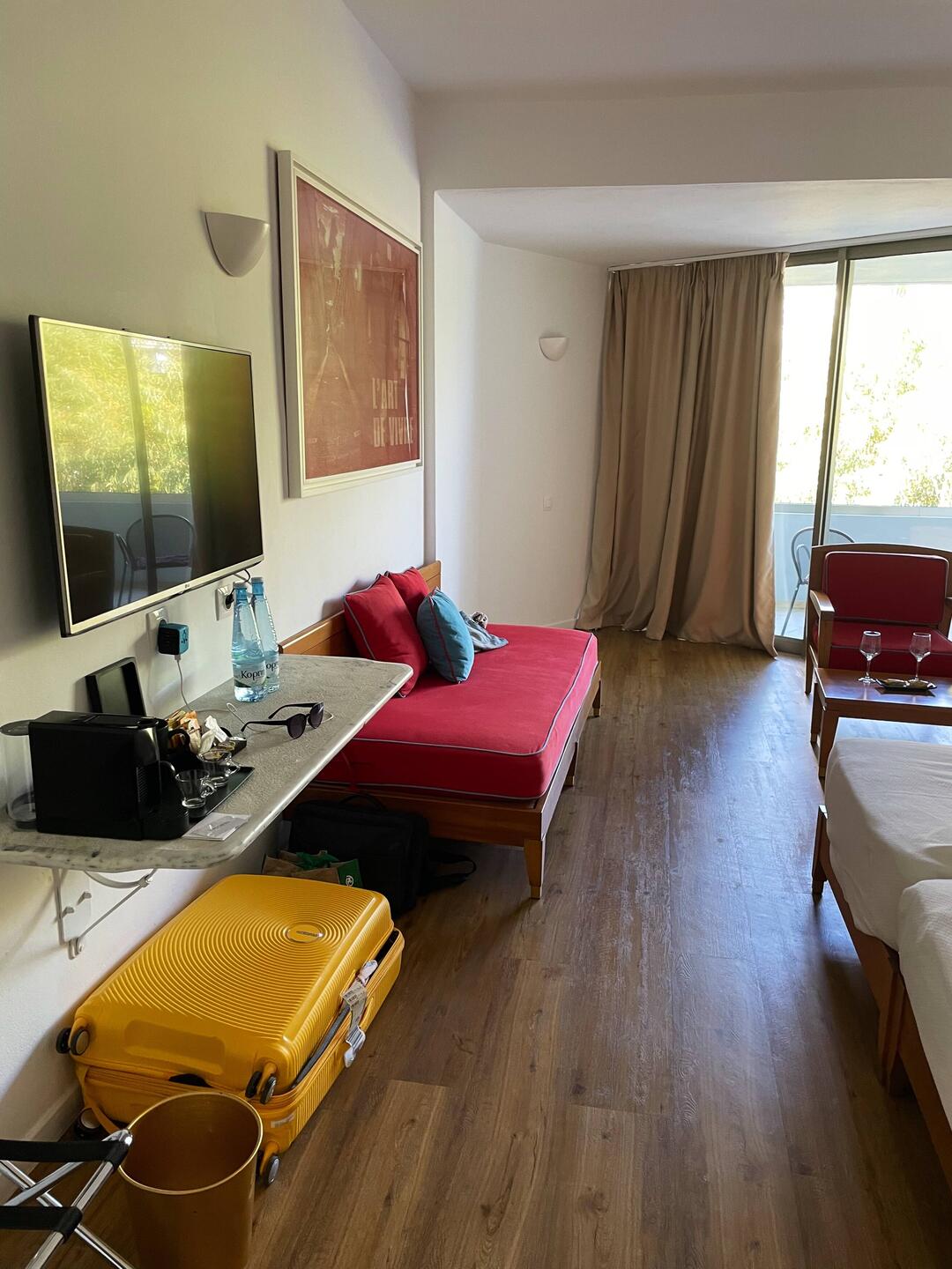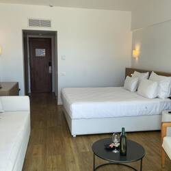 Strand. Hier gibt es ausreichend Strandliegen ,in unterschiedlicher Qualität, mit Sonnenschirmen dabei, auch das ist alles bereits inkludiert. Die Beachbar ist ein weiteres Highlight, neben nettem Personal, gibt es hier leckere Drinks und Snacks und es läuft den ganzen Tag chillige Musik in einer angenehmen Lautstärke. Der Strand selbst hat uns nicht soooo gut gefallen, da er doch eher dunkel und kieselig ist. Noch unangenehmer sind aber die Steine im Meer, ohne Badeschuhe wird der Ein-und Ausstieg wirklich zur (zum Teil schmerzvollen) Herausforderung. Hat man diese allerdings gemeistert, wird man mit Schwimmen im kristallklaren Wasser, bester Qualität, belohnt. Das tolle Wetter und azurblau funkelnde Meer haben unseren ersten Strandtag zusätzlich zu einem schönen ersten Urlaubstag gemacht. Vor dem Abendessen haben wir dann noch zufällig einen hoteleigenen Minimarkt entdeckt, der Souveniers und Waren des täglichen Bedarfs verkauft. Es ist natürlich alles hoffnungslos überteuert aber wer zahlt, notfalls, nicht gerne 5€ für eine Zahnbürste?! Das Abendessen im Buffetrestaurant stand dem Frühstück in nichts nach und zum Abschluss des Tages haben wir dem DJ, in der Beachbar, gelauscht. Hier waren uns aber eindeutig zu viele Familien mit kleinen Kindern, sodass wir, nach relativ kurzer Zeit, beschlossen haben unseren Tag, bei einem Glas Wein, auf unserem Balkon, ausklingen zu lassen. Morgen gibt es dann ein paar Detailinformationen zu unserem Zimmer und ein Update zum 2. Urlaubstag.Læs mere