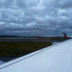 Gerade in Boston gelandet, Passkontrollen hinter uns und jetzt warten wir auf unser Gepäck.