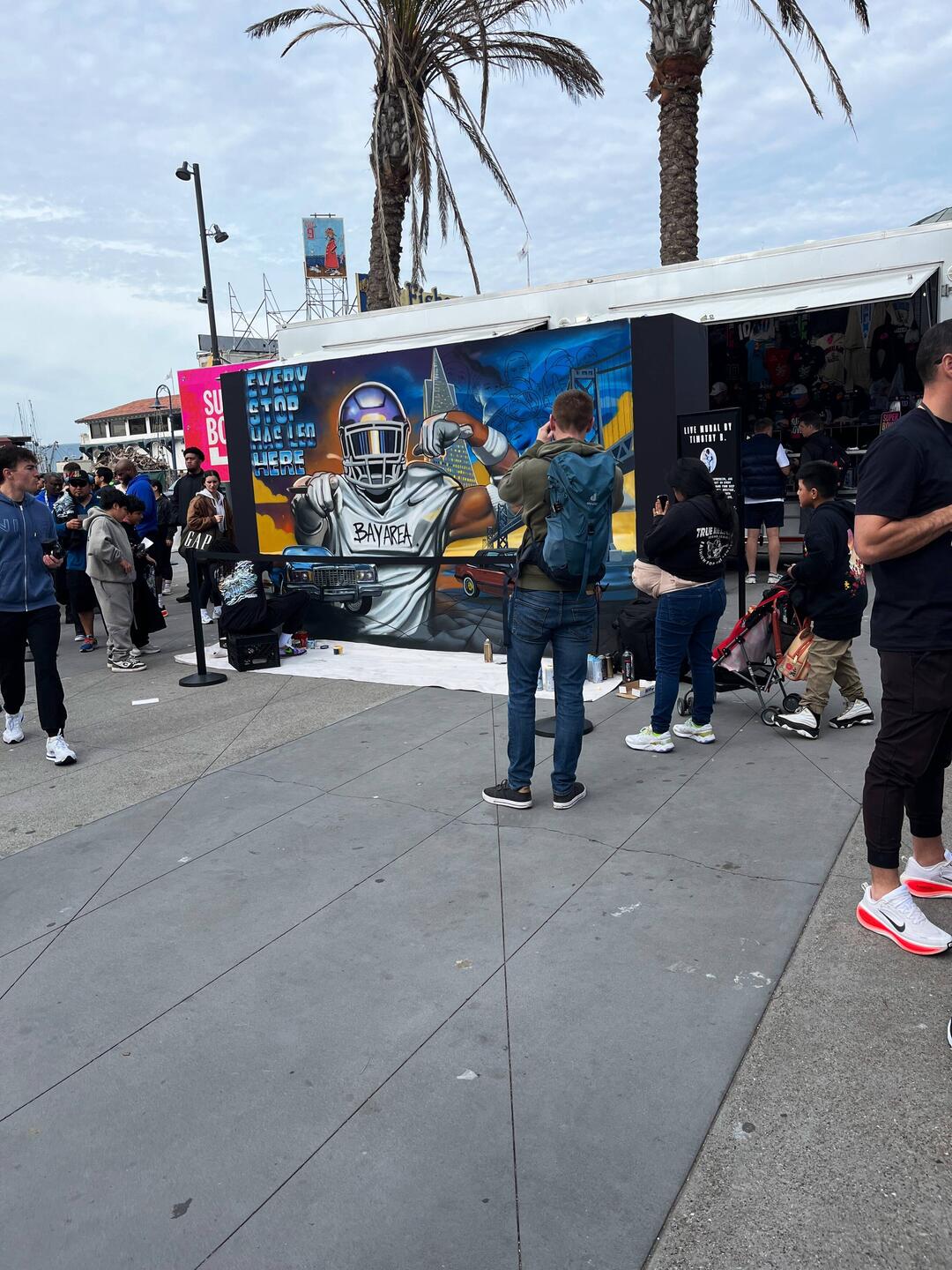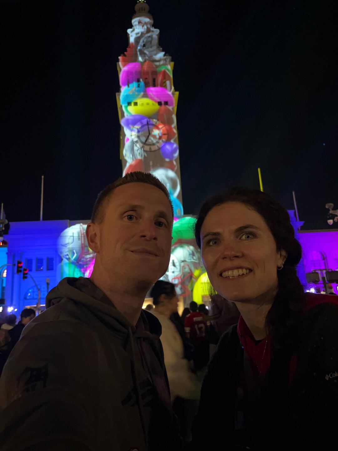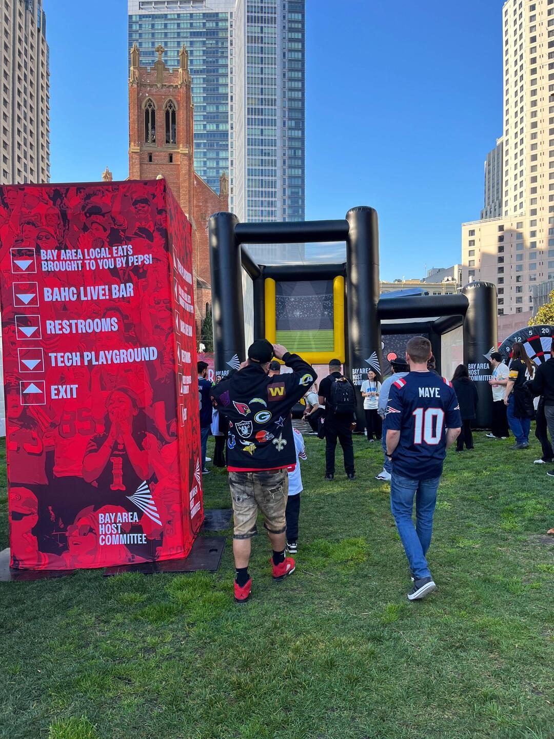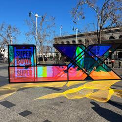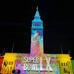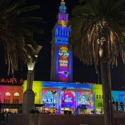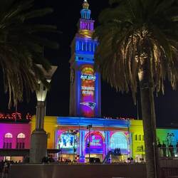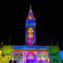 Am Ferry Building gibt’s eine kleine Show zum Super Bowl.