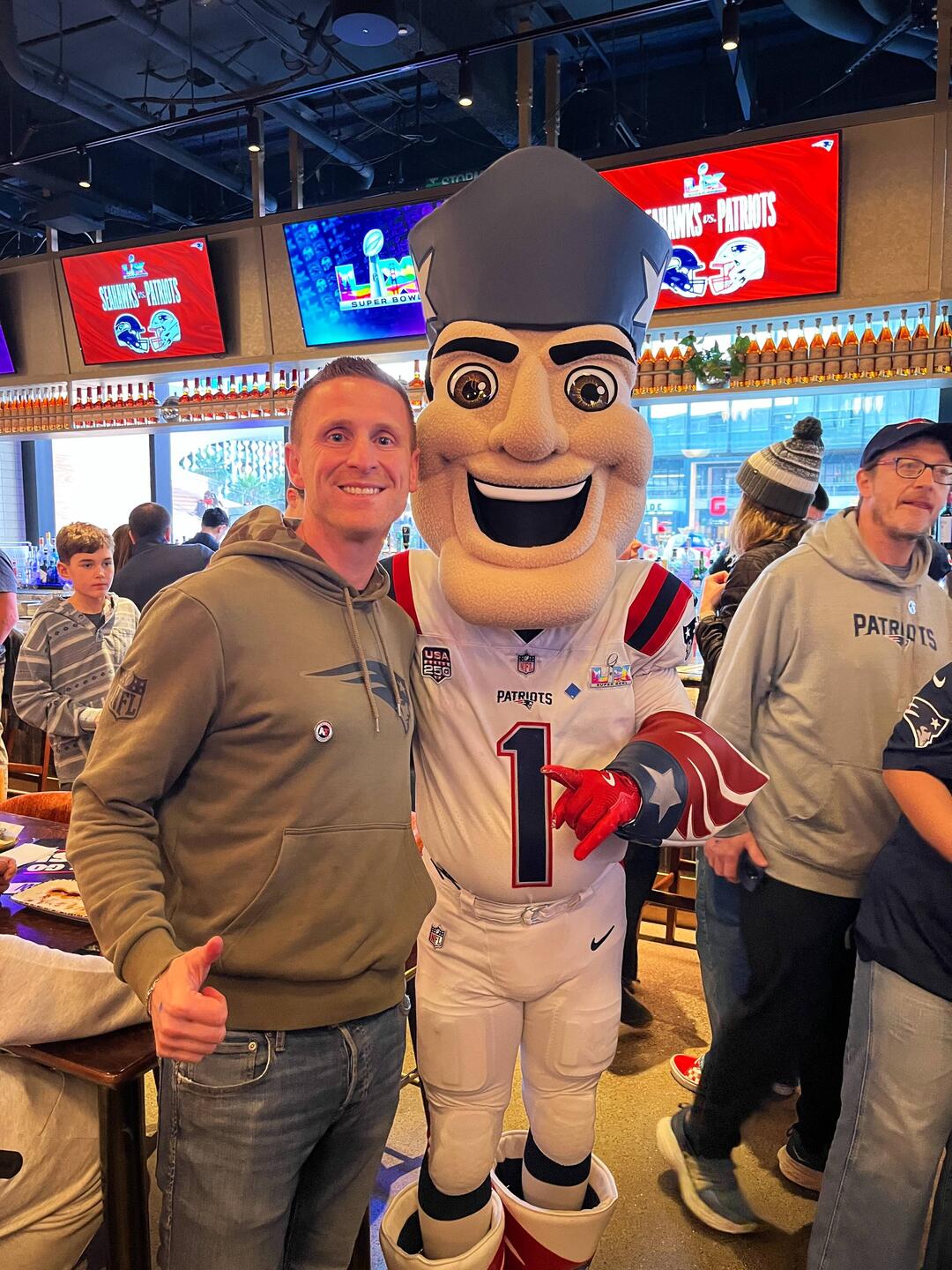 Ein bisschen einstimmen auf den Super Bowl zusammen mit den New England Patriots.