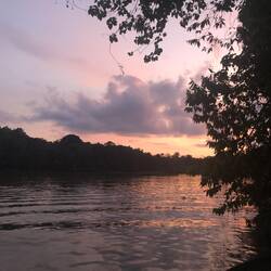 Erstaunlicherweise war kein anderes Boot auf dem Fluss, wir 8 Leute, der Fahrer und der Guide tuckerten im Dunkeln ganz nah und langsam am Ufer entlang und suchten mit Taschenlampen nach wilden Tieren.
