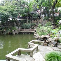 Pagoden, Geschäfte, Touristenfallen, aufdringliche Verkäufer (zumindest teilweise), der Yu-Garten und das alte chinesische Teehaus mit der Zick-Zack-Brücke - und in der Mitte eine riesige chinesische Vase mit bunten Blumen. Im Teich unterhalb des Teehauses mit der Zickzackbrücke gabs Koj-Karpfen in allen Farben und größen. Die Dinger können echt groß werden. Vermutlich wird von einem großen eine 4-köpfige Familie durchaus satt.