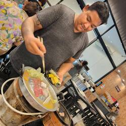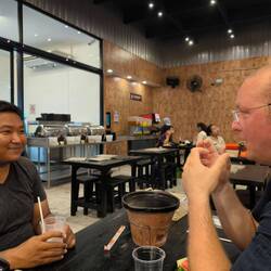 Herrlich, nach Tims Training sind wir mit Mr. Miagi, den wir durch einen Ausflug wo er Reiseführer war kennengelernt haben, lecker essen.