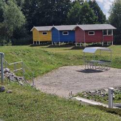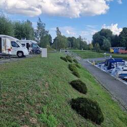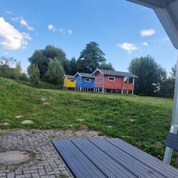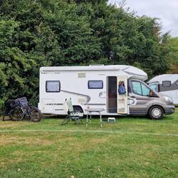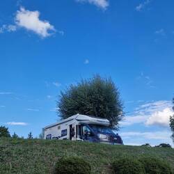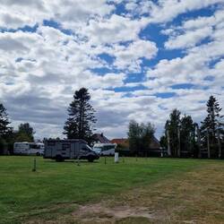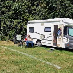 Der Stellplatz besteht aus einer Wiese bei einen alten Gut, mit Strom und Wasser sowie V+E.