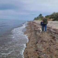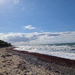 Lange geschlafen dann runter zum Strand mit Jackie. Später deftiges Frühstück und ab auf die Räder durch den Küstenwald. Am Stand Hühnergötter gesucht und dann war der Kiosk zu. Also ab zumLæs mere