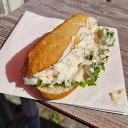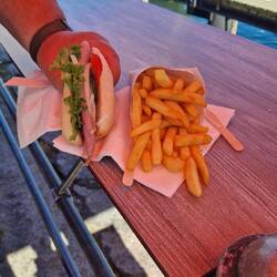 Das Highlight des Tages war , nachdem wir im Netto die Getränke aufgefüllt hatten, die Radtour zum ortsansässigen Fischereihof. Dort ließen wir uns es mit den leckeren Fischbrötchen undLæs mere