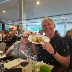 We boarded the boat at 12.30, had a lovely lunch and then settled into our cabin. We explored the boat, walked the top deck, found the Gym and the Wellness centre went to lounge and had a couple ofRead more
