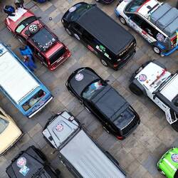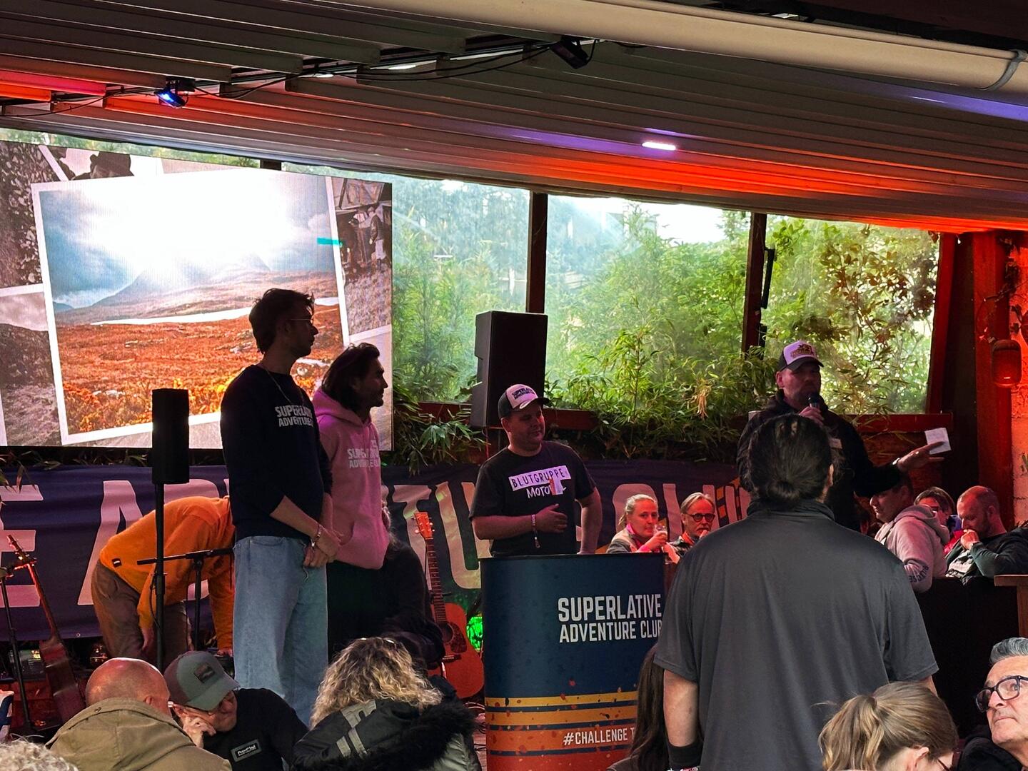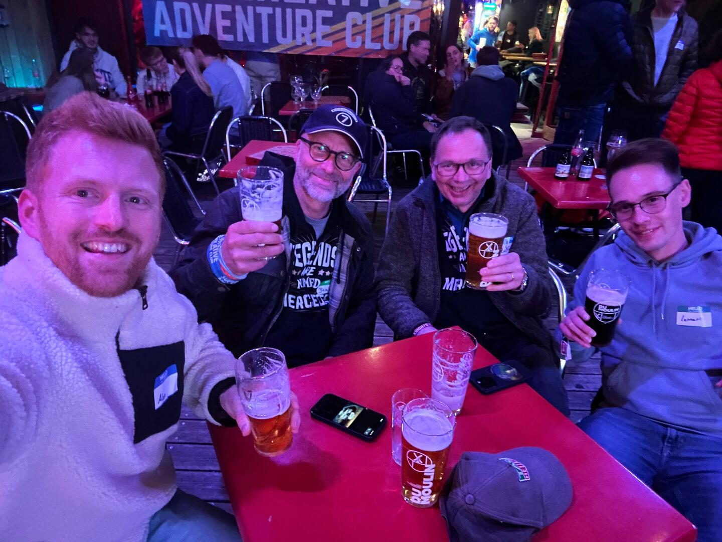Bernd und Alex, alte Rallye-Bekannte aus Italien wiedergetroffen und schon deren Heimatbier angeboten bekommen.