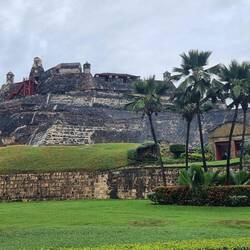 Als wir in Cartagena einfuhren war es noch halbwegs trocken. Als wir dann aber das Schiff verliessen schüttete es wie aus Eimern.