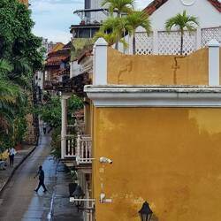 Als wir in Cartagena einfuhren war es noch halbwegs trocken. Als wir dann aber das Schiff verliessen schüttete es wie aus Eimern.