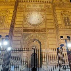 Vstopnina za Sinagogo je bila za 2 osebi 50€, kar se nama je zdelo dosti veliko, ampak ja, greva notri če sva že tu. Mimo pregleda kot na letališču greva kar naravnost mimo zunanjega pokopališča v kletne prostore muzeja. Prikazane so nazorne fotografije z opisi iz časa 1., med in 2. Svetovne vojne. Nekaj kar nisva, mogoče, želela brati in sva na hitro šla mimo. Nato pa stopiva v kapelico, kjer meni zaposlena oseba ponudi papirnato okroglo čepico, takšno kot nosijo judje. Se mu zahvalim in zavrnem, nato pa šok. Moški mi jasno glasno reče v nemškem jeziku "Raus", kar pomeni naj izginem ven in zveni zelo ironično, da to izgovori Jud, ali se to samo meni zdi🤔? Malo šokirana, Tamara mogoče še bolj, greva iz kapelice in se sprašujeva, ali je to res normalno, da plačava 50€, za cerkev in možakar ne more pokazati malo razumevanja in razloži, da je to obvezen del njihove kulture?! Če se malo pošalim, mogoče pa sedaj malo bolje razumem Hitlerja...imeli so denar, bili so osorni in samosvoji🤔🙃. Ogledava si še notranjost, kjer so prav tako delili čepice, ampak tokrat prijaznejši gospod. S čepico se sprehodiva skozi notranjost, kjer je sigurno drugačna, kot pri ostalih verah, narediva nekaj slik in nato ven. Čepico odložim poleg fanta na klopi in v upanju, da si jo bo pa nekdo shranil, namesto, da roma v smeti.