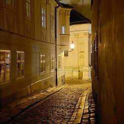 Za dostop v staro mestno jedro je kar malo iskanja, saj te pot vodi iz široke ulice v neko stransko, ki na prvi vtis je samo "ena" ulica. Nato pa v trenutku prehoda pod Michalskimi Brani ali prehodom prideš v staro mestno jedro in nemudoma se ti odprejo tlakovane ulice z bari, souvenir shopi, itd. Sprehodiva se čez mestec in najdeva restavracijo za pijačo in jedačo. Dubliner se je reklo restavraciji, kjer so stregli točen Guiness, odlično. Tamara si vzame samo priloge, čebulne obroče in sladek krompir, jaz pa rebre, ki jih nisem jedel že kakšni 2 leti. Pivo odlično, rebre so imele preveč glazure, Tamarina hrana pa prav tako odlično, saj je vse pojedla.