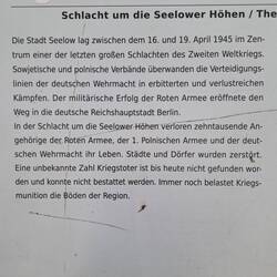 Die Schlacht um die Seelower Höhen vom 16. bis 19. April 1945 eröffnete die Schlacht um Berlin am Ende des Zweiten Weltkrieges. Seelow liegt etwa 70 km östlich von Berlin am Oderbruch,Baca lagi