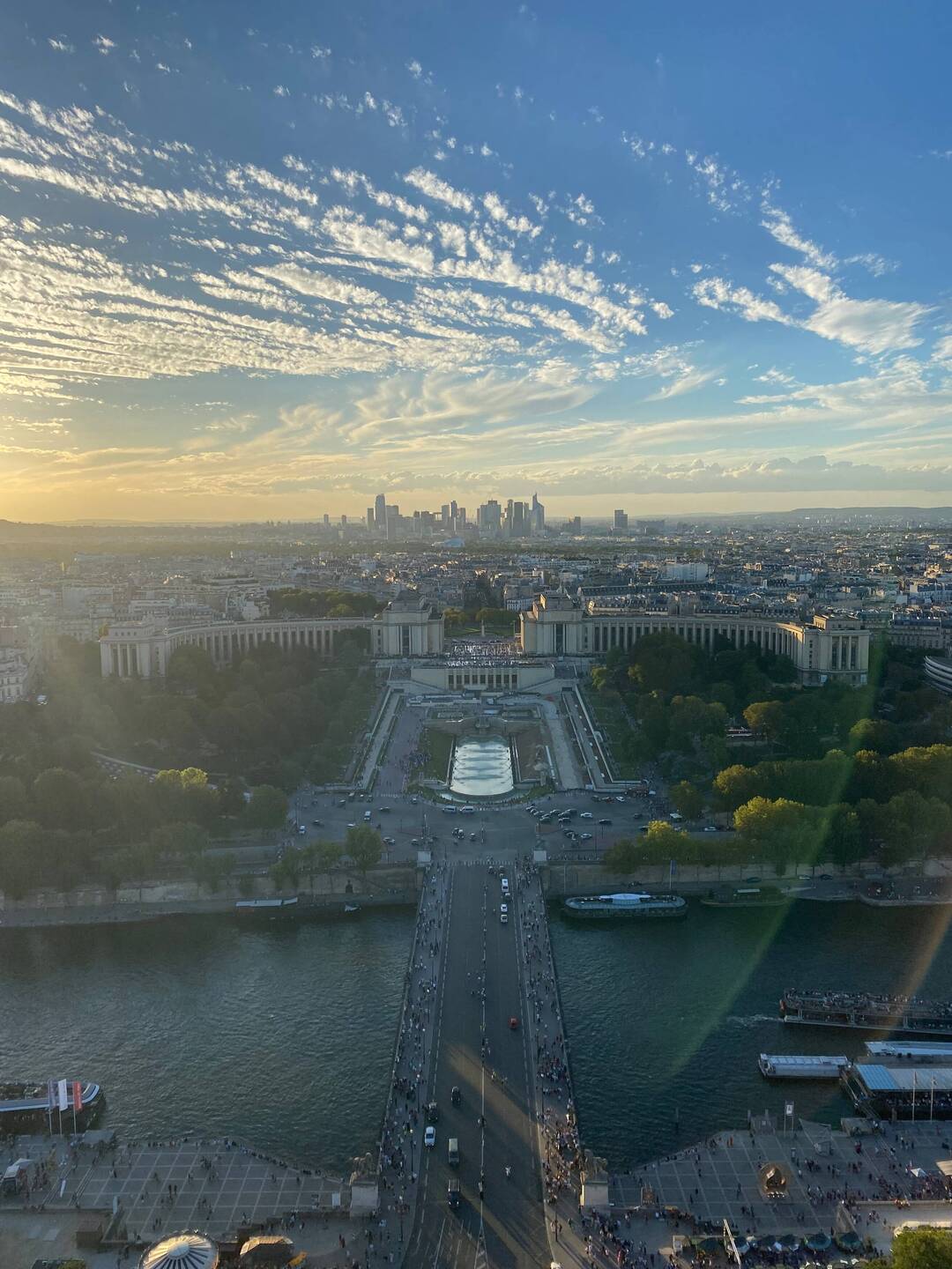 In Paris geht nun langsam die Sonne unter und wir genießen es vom Eiffelturm aus