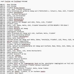 Zumindest am Anfang der Tour werde ich mich mit Footprints stark zurückhalten, weil ich mir noch nicht sicher bin wie viel ich mit dem Handy navigieren muß. Bisheriger Erfahrung nach sind gut ausgeflaggte Wanderwege hier im Nord-Osten eine Rarität. Sollte ich merken, daß ich wenig navigieren muß kann ich auch wieder Strom für Internet opfern. Denn wenn überhaupt würde ich gerne erst in Zesch am See nach ~338 Trailkm auf einen Campingplatz gehen, weil es der einzige entlang der Route ist bei dem Duschen ohne Marke ist. Überhaupt habe ich bei meinen Recherchen gemerkt, daß Camping unsäglich teuer geworden ist. Bei den Preisen kannste auch gleich schauen, ob du nicht irgendwo viel günstiger n Montagezimmer o.ä. bekommst. Selbst die DJHs sind teuer geworden, in Köhten verlangt die DJH satte 26€ für eine Übernachtung auf dem zugehörigen Zeltplatz; völlig irre...