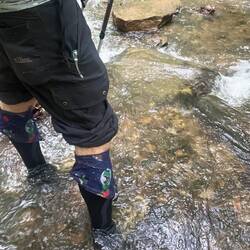 Enormous rainfall overnight meant that trail conditions were beyond wet. The streams were exceeding their banks and the trails were often puddled, and in many cases cascading with water!