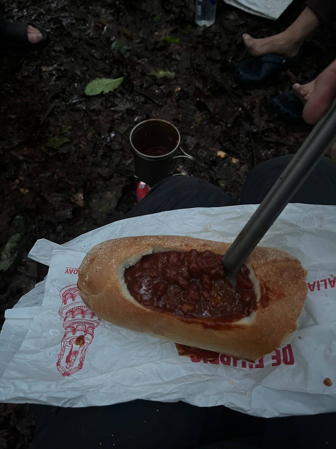 I had an idea and executed it as perfectly as possible. Decent bread is quite a luxury on trail but there are a lot of good deli’s in this area so I decided to make a chili bowl, and it was greatLæs mere