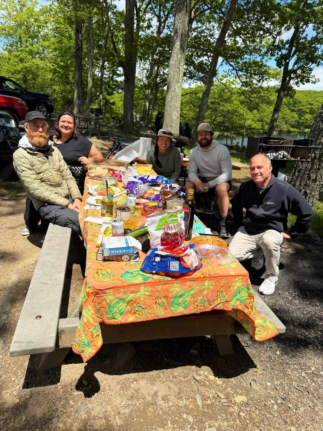 Huge spread provided by Linda and Joe at the picnic area including pan fried pirogies, fruits breads, chips, dips, sweets & treats. Little Foot’s family friend Sharon was there too and she broughtLæs mere