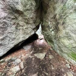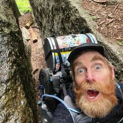 Super tight spot on trail. My bear can was scraping the sides 😂😬 immediately after the squeeze there was a vertical wall climb that was fun to figure out 🫠